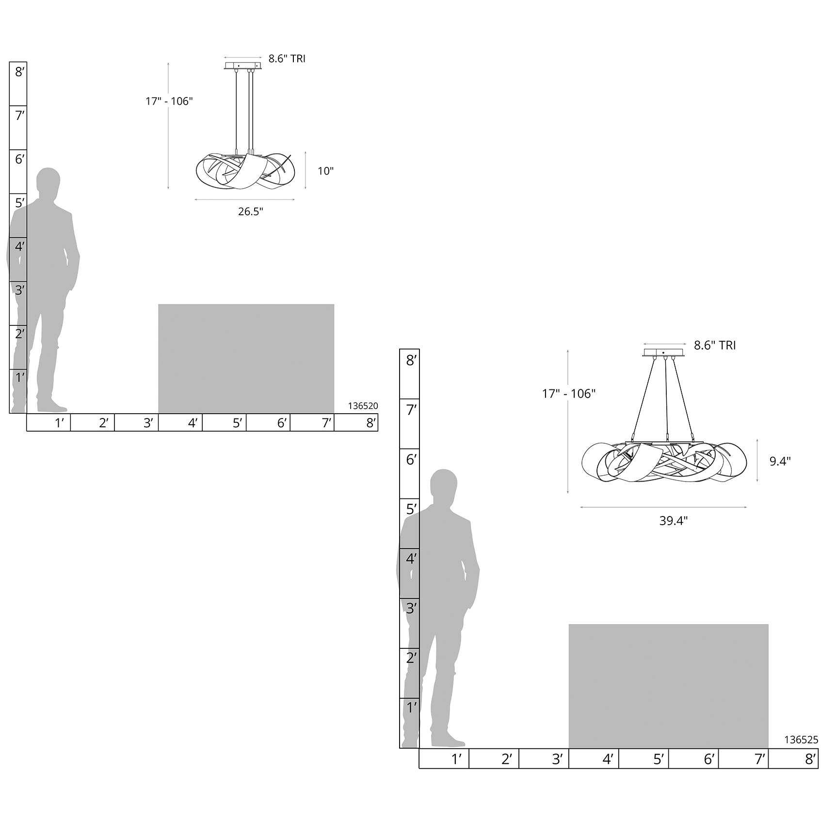 The Flux Pendant is poetry in motion for your interior space. The handcrafted curves of steel give the illusion of movement, striking the perfect balance with your room. Canopy: 8.6 inch x 8.6 inch x 8.6 inch rectangle. Limited Warranty when installed in residential setting. Handcrafted to order by skilled artisans in Vermont, USA. US Patent D782,723