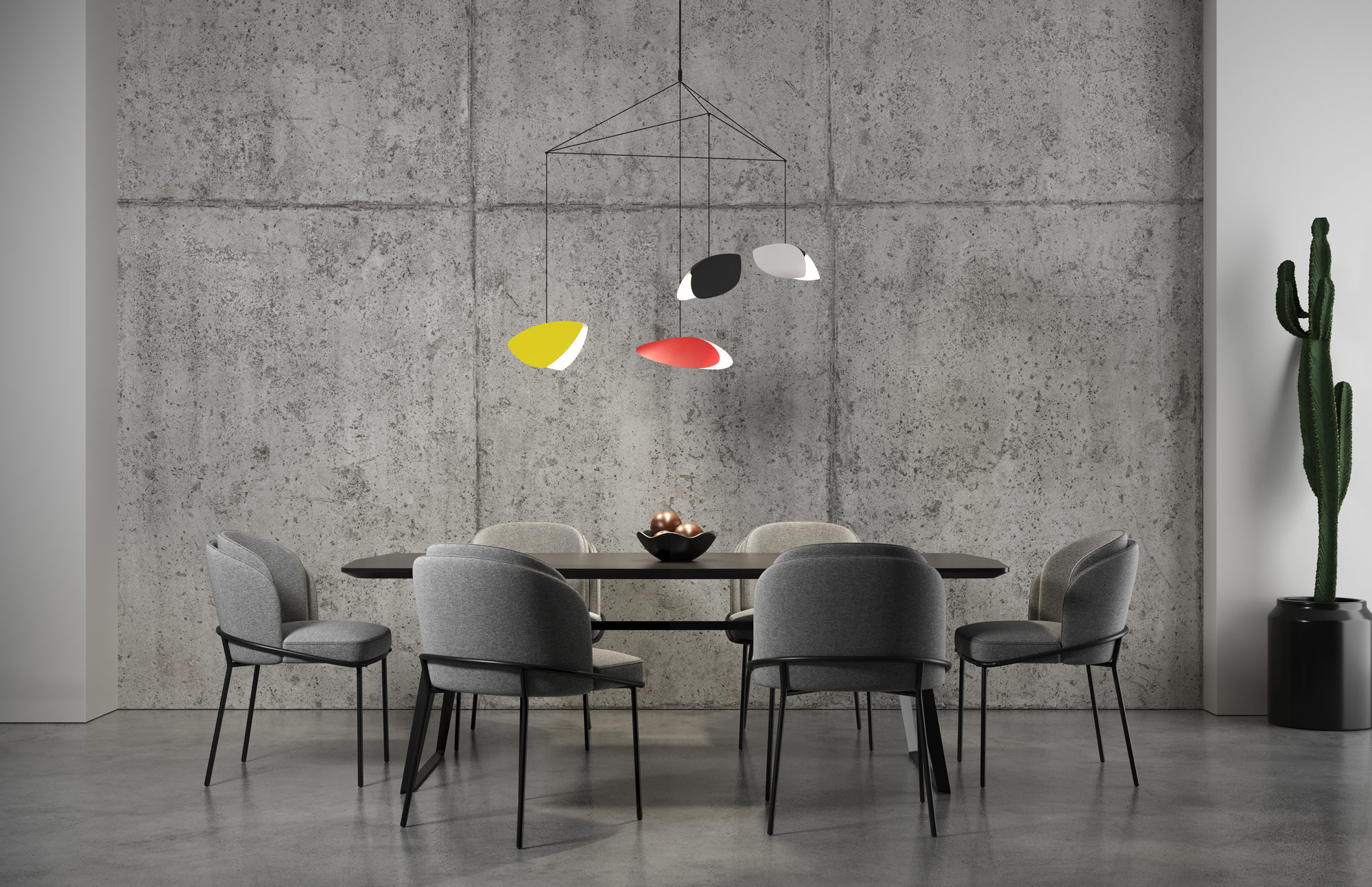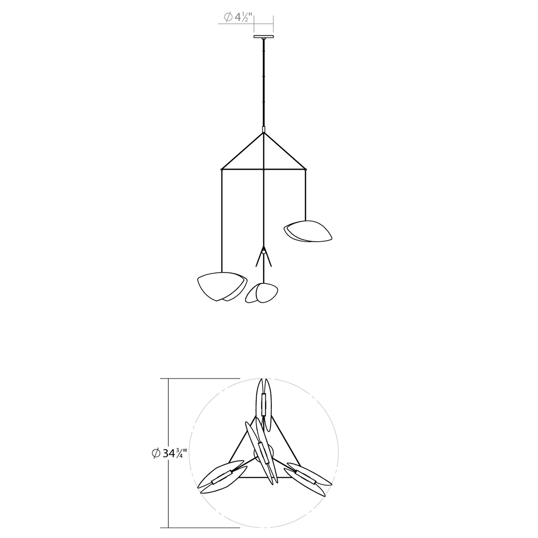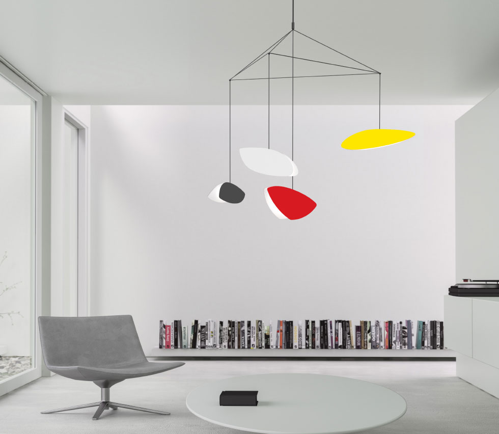 The Papillons Pendant features four whimsical shapes floating in suspension. Finish in Satin Black with metal shades in Satin White, Satin Black or Multicolor Integrated LED module. Dimmable with a Triac or electronic low voltage (ELV) dimmer, sold separately. Includes driver to be mounted inside outlet box.