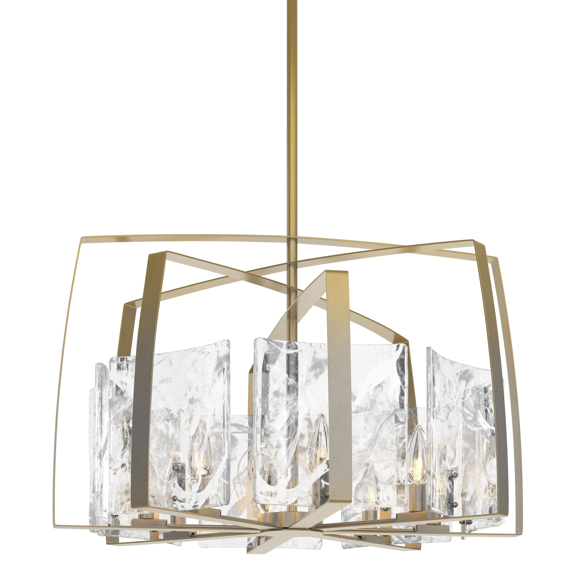 The Arc Pendant brings a contemporary update to the traditional lantern style. Thick, hand poured White Swirl slightly convex glass panels are framed with sweeping arcs of steel. Canopy: 6.5 inch diameter. Sloped ceiling adaptable to 45 degrees. Lifetime Limited Warranty when installed in residential setting. Handcrafted to order by skilled artisans in Vermont, USA.