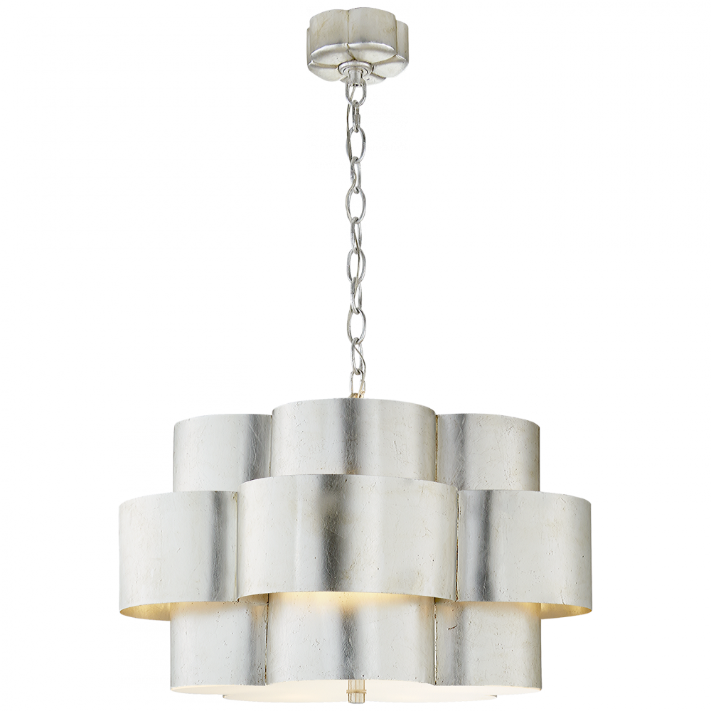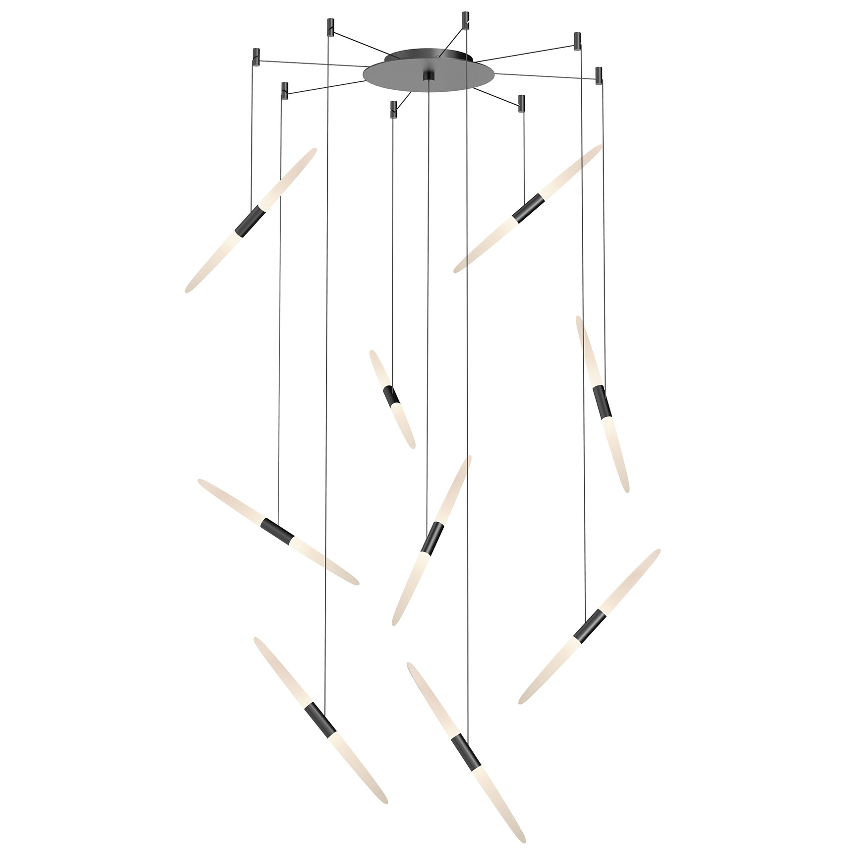 Single-lamp pendant with conical aluminum shade showcasing powder-coated finishes against a matte white interior. Exterior shade colors are black, gray, white or blue. Metallic exterior options are brushed nickel or gold. Suspended by cloth cable