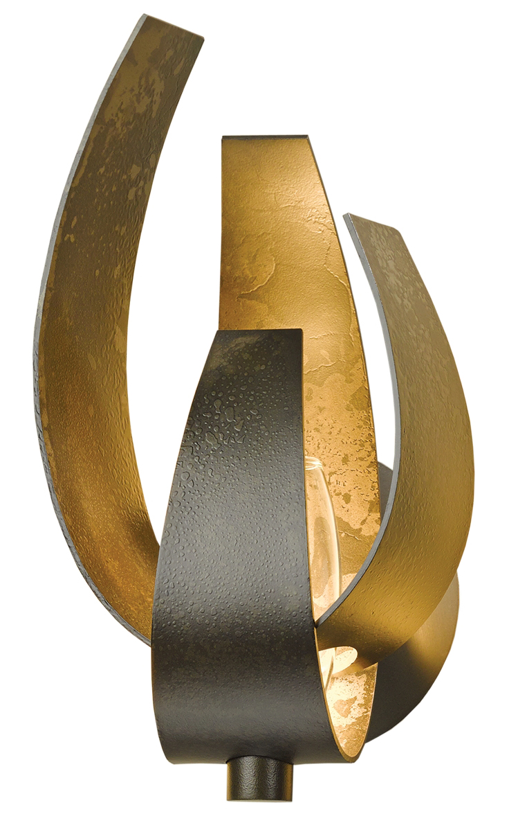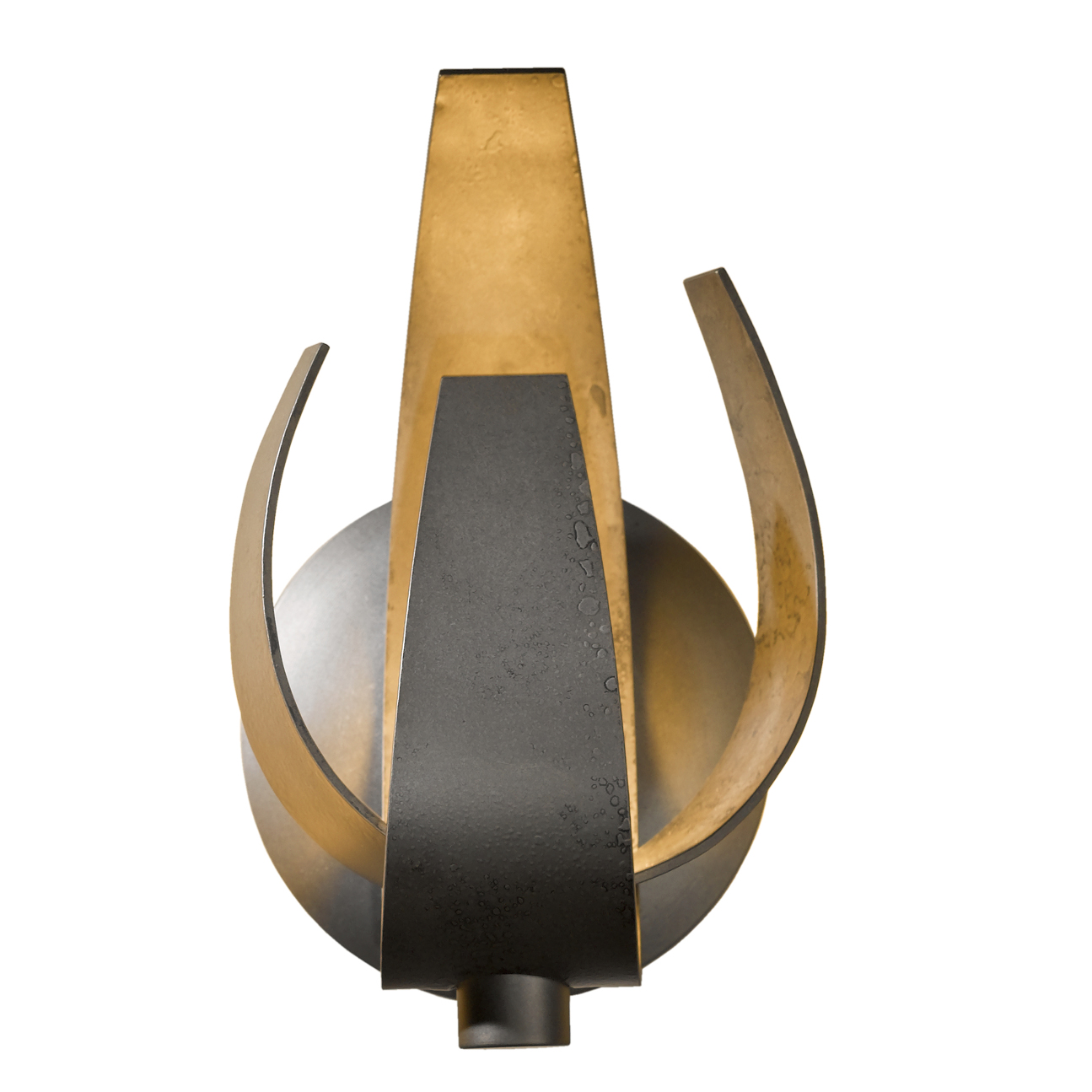 The Corona Wall Sconce adds a decorative elegance to your interior space. Light is warmly reflected through the diffuser and reflects off the gently curved hand formed steel bands. The two-tone appearance of the forged steel is a result of the warm glow from the bulb when lit. Available in…