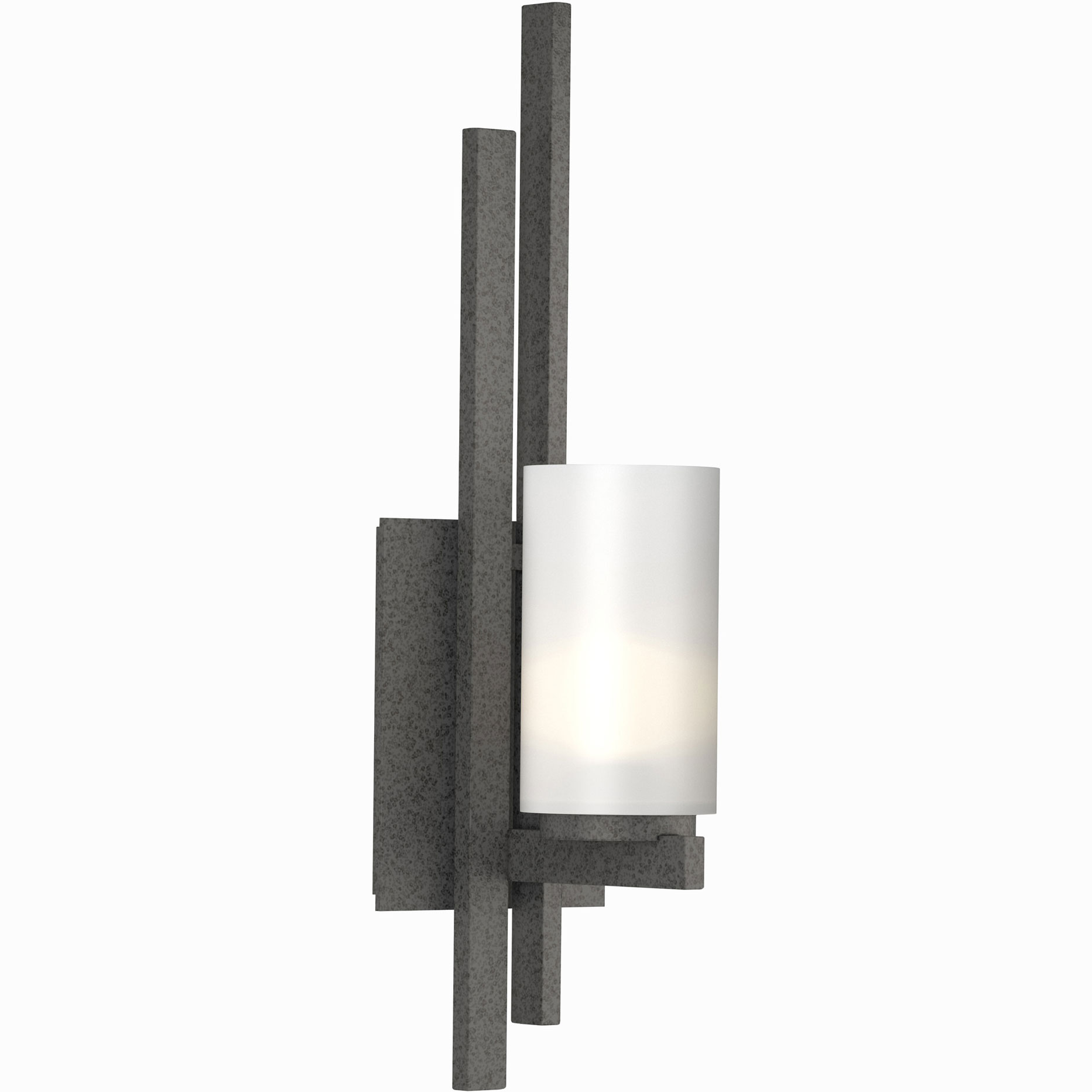 The Ondrian Wall Sconce brings a clean detailed look to your interior space. The glass cylindrical shade rests on horizontal steel bars. Available in Right and Left oriented versions. Lifetime Limited Warranty when installed in residential setting. Handcrafted to order by skilled artisans in Vermont, USA.