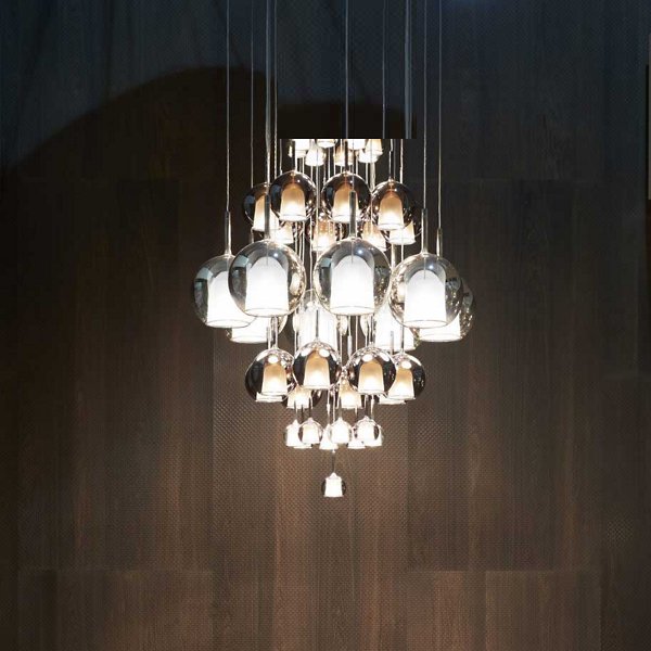 The Glo Pendant from Penta is a dreamy volume, designed to enhance the glare of its alluring light. Carlo Colombo creates works with a high artistic value. This pendant appears like a hanging sculpture as its cord suspension transitions seamlessly into the pointy top of the lamp shade. This outer see-through lamp shade evokes a raindrop in its curves and its reflective quality. This shade’s reflective surface accentuates the brilliance of the light from the inside or outside. An internal opaque shade mellows outpouring light by hiding the lamping. While on, the room receives a layered glow that’s great for atmosphere and tasks.