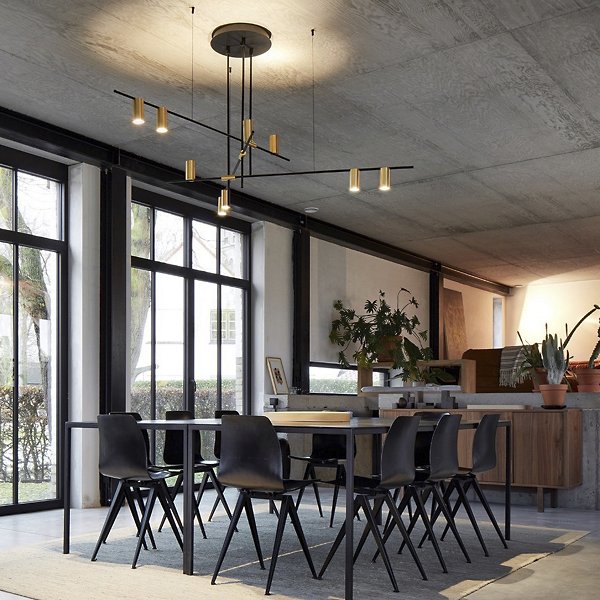 A David Abad design created as a minimalist interpretation of the beautiful and intricately crafted Native American peace pipe. Make a statement with or without the lights through sophisticated geometry of the Tribes LED Chandelier from tossB. Pipe-like contours zip past your head in every direction, creating a sense of movement that energizes your rooms. Its cylindrical shades and vertical down rods don’t just serve a practical purpose, they resemble the traditional ornamentation that often draped from the ceremonial pipes. The shades point up and down, together with LEDs inside, they usher out an awe-inspiring glow that glazes the ceiling and washes over the floor.